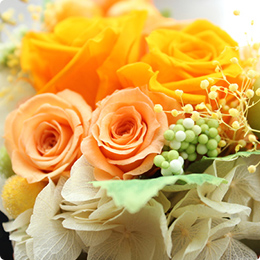 切花をつけ置くことにより、生花の質感を残しつつ、長期間枯れずに展示することができます。